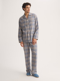 Effortless comfort meets timeless craftsmanship. Slip into luxury with the men's Douglas mule slippers—crafted from supple suede with a plush sheepskin lining, they’re the perfect cozy companion for pyjamas or loungewear. Easy to slide on, they bring instant warmth and comfort after a long day or chilly morning. Handmade in England, the Douglas features a soft cow suede exterior, a cushioned sheepskin footbed and a flexible suede sole that lets you move quietly in comfort. A navy leather trim adds a refined finishing touch. Made at a family-owned workshop with over 80 years of shoemaking expertise, each pair takes up to four weeks to complete using the finest locally sourced suede and sheepskin. A timeless essential for at-home luxury. PRODUCT DETAILS Composition: Suede Out (Cow) Sheepskin In Pattern: Plain Country of Origin: United Kingdom Item Number: 0504-DOUG004BLU