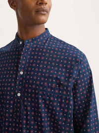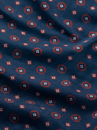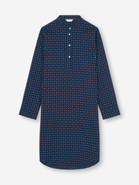 Lightweight heritage style with a refined rose motif. Celebrating 100 years of Derek Rose, this men's nightshirt features a hand-drawn foulard design with a subtle rose motif, coloured in timeless navy blue. Crafted from our signature lightweight cotton batiste, it offers a supremely soft, breathable and cool feel—perfect for a restful night’s sleep. Cut generously for ease of movement, the nightshirt includes a four-button pullover front, neckband collar and breast pocket. A piped finish at the cuffs, pocket and collar adds an elegant touch to this classic sleepwear style. Durable, airy and effortlessly comfortable, this nightshirt combines traditional design with modern craftsmanship. Add a personal touch with monogramming or a motif. Model is 6’2” / 189cm, wearing a size Medium. PRODUCT DETAILS Composition: 100% Cotton Fabric Weight: Light Pattern: Print Sleeve Length: Long Sleeve Country of Origin: Czech Republic Item Number: 5775-NELS107NAV