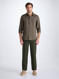 Our Sydney trousers are cut for a regular fit with a slight taper at the ankle for the perfect, warm weather ready style. Featuring a curved back yoke for a great fit and an elasticated waistband with a drawcord for comfort. The front of the trousers feature two angled side pockets whilst the back features a single zipped pocket that sits under the curve of the back yoke. This pocket is closed with our unique pin-lock zip which locks into place when flat to ensure a secure closure. A zipped fly opening and our minimalist rose logo label on the front left pocket finish the look. We have developed a mid-weight, beautifully soft and breathable pure linen that will keep you cool and comfortable in even the hottest of conditions. Made in Italy, this fabric is finished by being piece-dyed before construction for a rich khaki tone. Unlike other linens, ours isn't itchy or scratchy, so they're perfect for wearing from the villa to the beach, the pool or as a cool, smart-casual trouser for sultry evening walks and dinner by the sea. The model is 6’1” / 188cm tall. He wears a size Medium. PRODUCT DETAILS Material: Pure Linen Fabric Weight: Medium Fabric Type: Regular Gender: Men's Colour: Khaki Pattern: Plain Season: 26-S Country of Origin: Czech Republic Composition: 100% Linen Fit: Regular Fit Item Number: 9800-SYDN002KHA