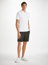 The Jacob is an incredibly durable garment. The fabric is considered the strongest naturally grown cotton in the world which means it will resist wear and last a lifetime. The definition of a luxurious investment. The fabric also has an unrivalled softness as the long-staple yarns create a smooth and silky surface. This is not cotton as you know it. Featuring a ribbed collar, mother of pearl buttons, knitted back neck tape to minimise stretching and tubular knit hem and cuffs, the devil really is in the detail with our Jacob collection. Jacob is not your average short sleeve polo shirt. Jacob is a lightweight Sea Island Cotton knit, grown and spun in the West Indies before being knitted and garment-dyed in Europe. Sea Island Cotton fibres are cultivated exclusively on the West Indies Islands in the Caribbean where the tropical climate produces what are considered the most luxurious cotton fibres in the world. Sea Island Cotton comes from the seed of the Gossypium Barbadense plant which produces the longest fibres in the world with pile lengths of more than 50mm. Genuine Sea Island Cotton is the rarest type of cotton, making up less than 0.0004 percent of the world's cotton production. The West Indian Sea Island Cotton Association (WISICA) inspects and certifies every kilogram of locally produced cotton and the hologram on our swing tag is a sign of 100% authentic Sea Island Cotton. The model is 6’1” / 188cm tall with waist size 32” / 82cm, chest size 38” / 99cm. He wears a size Mediu m. PRODUCT DETAILS Material: Sea Island Cotton Fabric Weight: Light Fabric Type: Regular Gender: Men's Colour: White Pattern: Plain Sleeve Length: Short Sleeve Season: 24-W Country of Origin: Portugal Composition: 100% Cotton Fit: Regular Fit Item Number: 9850-JACO001WHI