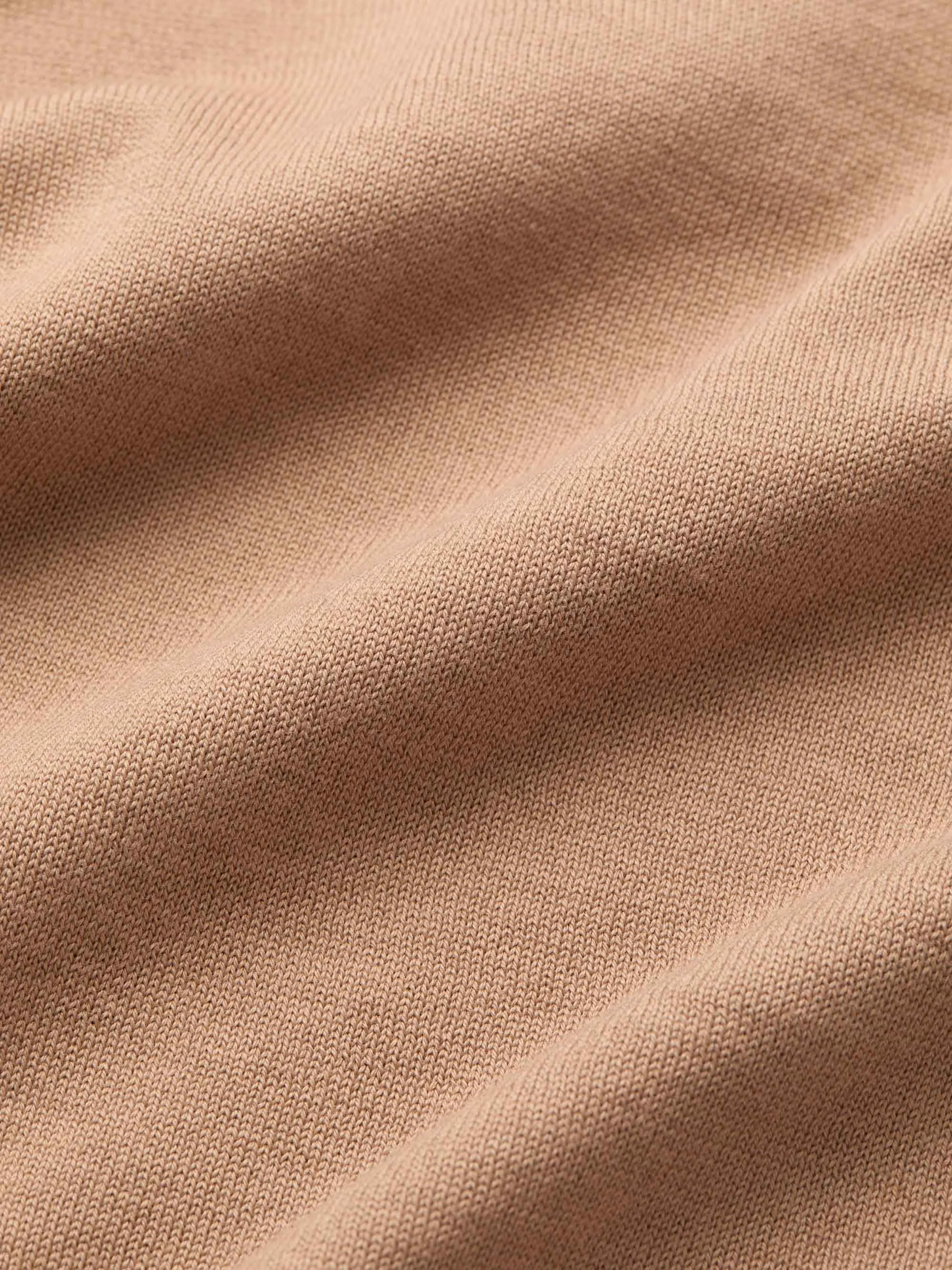 Jacob is not your average short sleeve polo shirt. Jacob is a lightweight Sea Island Cotton knit, grown and spun in the West Indies before being knitted and garment dyed in Europe. Sea Island Cotton fibres are cultivated exclusively on the West Indies Islands in the Caribbean where the tropical climate produces what are considered the most luxurious cotton fibres in the world. Sea Island Cotton comes from the seed of the Gossypium Barbadense plant which produces the longest fibres in the world with pile lengths of more than 50mm. Genuine Sea Island Cotton is the rarest type of cotton, making up less than 0.0004 percent of the world’s cotton production. The West Indian Sea Island Cotton Association (WISICA) inspects and certifies every kilogram of locally produced cotton and the hologram on our swing tag is a sign of 100% authentic Sea Island Cotton. The Jacob is an incredibly durable garment. The fabric is considered the strongest naturally grown cotton in the world which means it will resist wear and last a lifetime. The definition of a luxurious investment. The fabric also has an unrivalled softness as the long staple yarns create a smooth and silky surface. This is not cotton as you know it. Featuring a ribbed collar, mother of pearl buttons, knitted back neck tape to minimise stretching and tubular knit hem and cuffs, the devil really is in the detail with our Jacob collection. Designed to sit in our lounge and leisurewear collections, this smart polo can withstand heavy-duty relaxing, sport, holidays, informal and sophisticated events alike and generally every way you enjoy your free-time. The Jacob, seen here in camel, is perfect layered under other pieces, but honestly, you won't want to cover up this beauty. The model is 6’1” / 188cm tall. He wears a size Medium. PRODUCT DETAILS Material: Sea Island Cotton Fabric Weight: Light Fabric Type: Regular Gender: Men's Colour: Camel Pattern: Plain Sleeve Length: Short Sleeve Season: 25-W Country of Origin: Portugal Composition: 100% Cotton Fit: Regular Fit Item Number: 9850-JACO001CAM