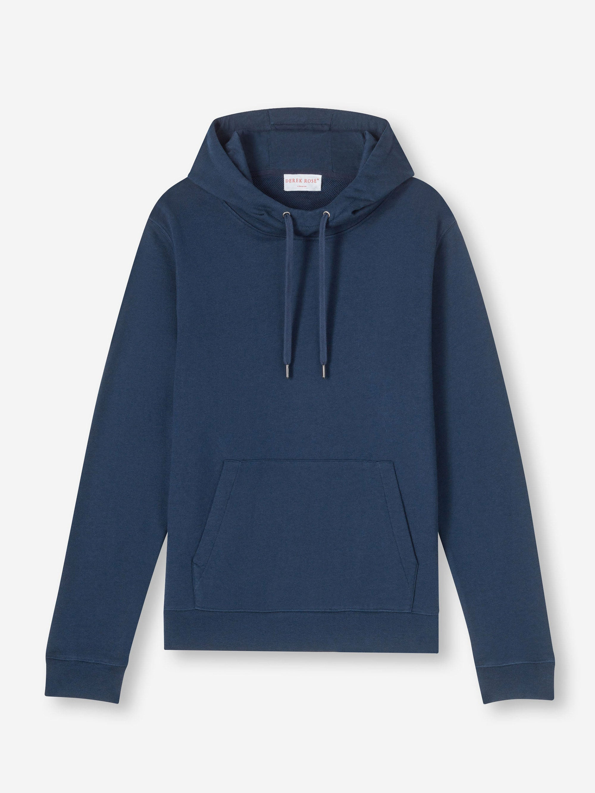 A brand new addition to our Quinn collection, our cotton modal blend pullover hoodie is a luxurious leisurewear essential. In a regular fit, this navy hoodie features a cosy funnel neck alongside a two panel hood for optimal comfort. Supremely soft, our cotton modal fabric is not only breathable and thermo regulating, but also naturally crease resistant, making it an ideal candidate for when you are out and about. With natural fibres and hypoallergenic properties, wash after wash Quinn retains its colour and doesn't fade. Complete with a handy kangaroo pouch pocket, travel in quiet luxury with a piece that will last for years to come. To make it truly special, we can personalise your garment with initials or a motif. Read more about our personalised service here . The model is 6’2” / 191cm tall with waist size 31” / 79cm, chest size 37 ” / 96cm. He wears a size Medium. PRODUCT DETAILS Material: Cotton/Micro Modal Fabric Weight: Medium Fabric Type: Jersey Gender: Men's Colour: Navy Pattern: Plain Sleeve Length: Long Sleeve Season: 24-W Country of Origin: Portugal Composition: 68% Cotton 32% Modal Fit: Regular Fit Item Number: 3179-QUIN001NAV