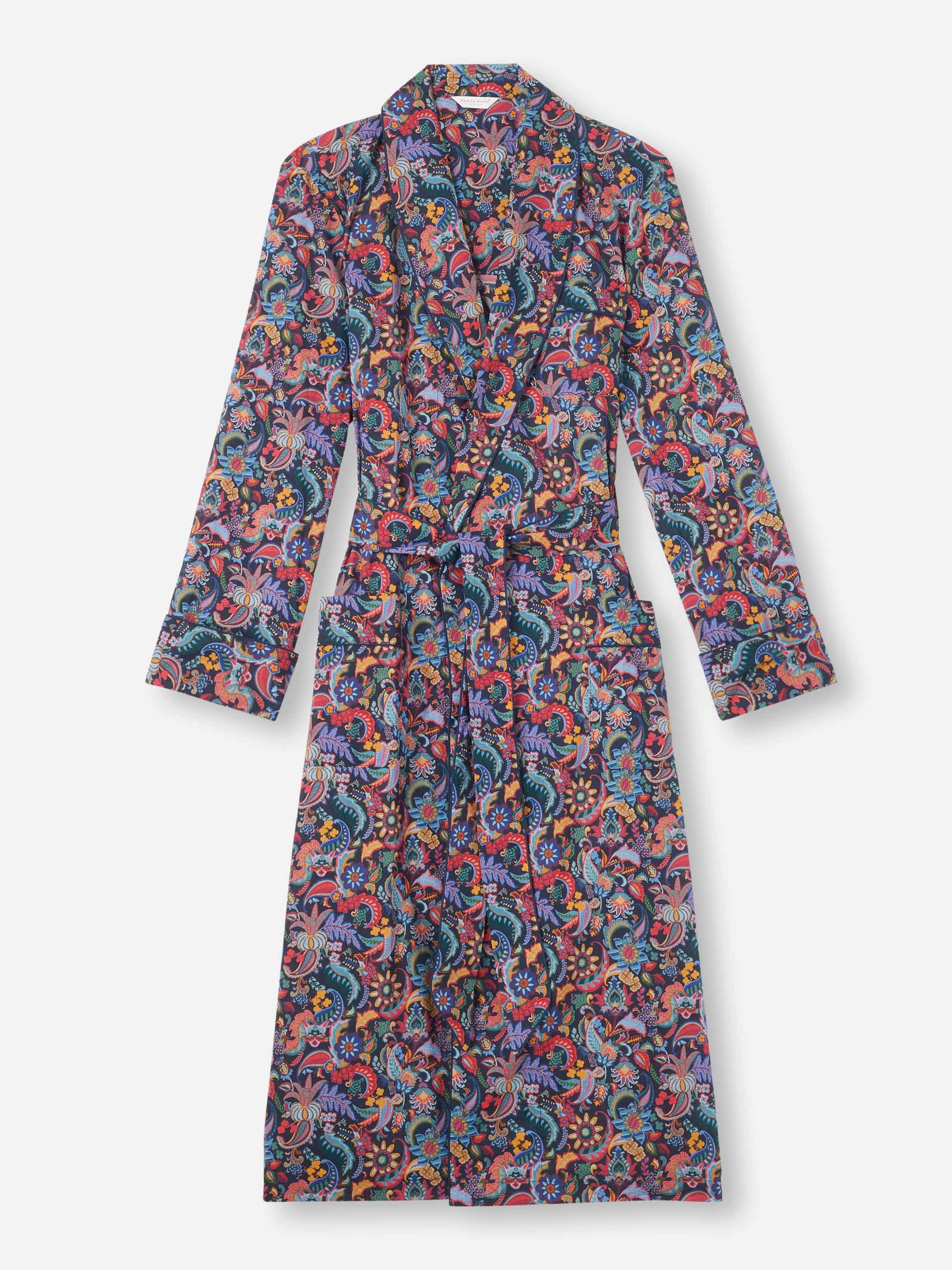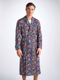 Designed to enhance your free time, our calf length dressing gown features two side seam pockets and a chest pocket ready for monogramming, a shawl style collar and a waist-tie for an effortlessly stylish finish. Our cotton batiste has become a firm favourite of our customers, thanks to its breathability, lightweight properties and luxuriously soft feel. With its vibrant jungle paisley print, this gown is the perfect choice for breakfast at home or for weekends away with loved ones. Combining classic ornamental paisleys with stylised jungle flowers, foliage and hidden Derek Rose references. Find the Derek Rose cat, a Rose Star and even our signature stripes. To make it truly special, we can personalise your garment with initials or a motif. Read more about our personalised service here . The model is 6’2’’ / 188.5cm tall. He wears a size Medium. PRODUCT DETAILS Material: Pure Cotton Fabric Weight: Light Fabric Type: Regular Gender: Men's Colour: Multi Pattern: Print Sleeve Length: Long Sleeve Season: 25-W Country of Origin: Czech Republic Composition: 100% Cotton Fit: Regular Fit Item Number: 5505-LEDB087MUL