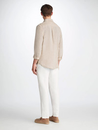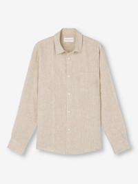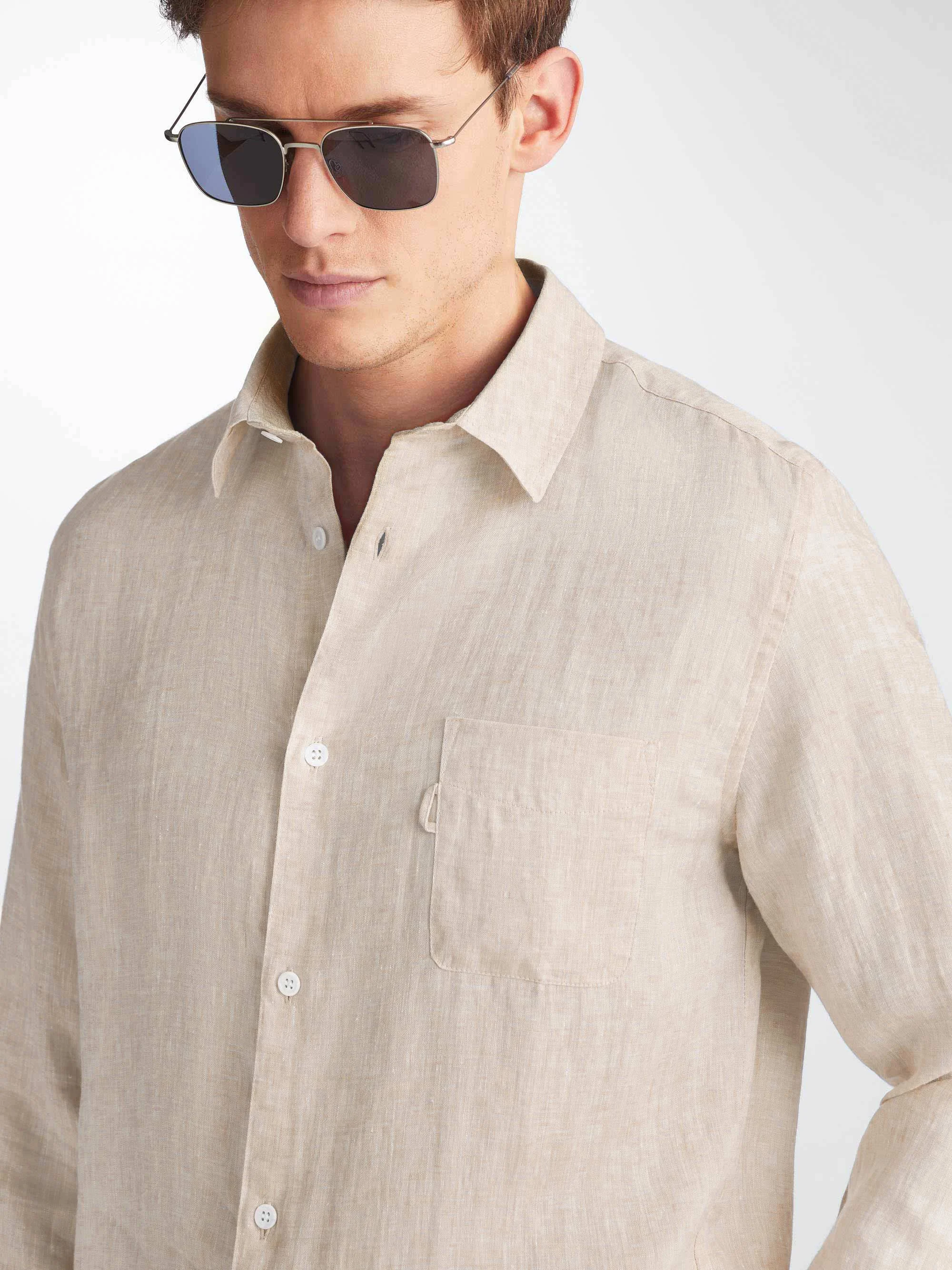 The Monaco shirt features a curved back yoke with a box-pleat for comfort and a curved hem with side vents for ease of movement. We've used the classic styling of a button-through front and cuffs, a 2-piece collar and for a modern addition, we've added a U-shaped breast pocket with a handy sunglass loop for effortless summer chic. For a final touch of luxe, the shirt is finished with mother of pearl buttons throughout and our minimalist rose logo label at the hem. There's also a handy 'locker' loop on the back for you to hang your shirt up when changing. We have developed this Italian fabric to be a lightweight, beautifully soft and breathable pure linen that will keep you cool and comfortable in even the hottest of conditions. This men's shirt is designed for a regular fit. The model is 6’1” / 188cm tall. He wears a size Medium. PRODUCT DETAILS Material: Pure Linen Fabric Weight: Light Fabric Type: Regular Gender: Men's Colour: Sand Pattern: Plain Sleeve Length: Long Sleeve Season: 25-W Country of Origin: Czech Republic Composition: 100% Linen Fit: Regular Fit Item Number: 9820-MONA001SAN
