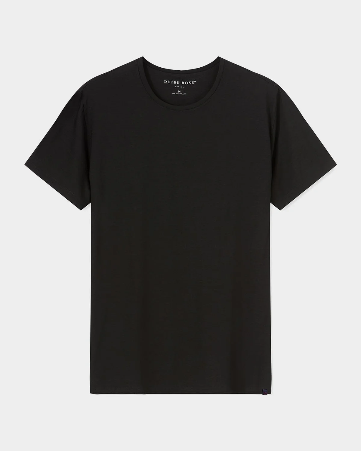 - Derek Rose stretch T-shirt - Crew neckline - Short sleeves - Relaxed fit - Pullover style - Micromodal/elastane - Made in Czech Republic - Model is 6'1"/185cm.