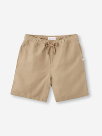 The Sydney short features a curved back yoke for a great fit and an elasticated waistband with drawcord for comfort. The front of the short features two angled side pockets whilst the back features a single zipped pocket that sits under the curve of the back yoke. This pocket is closed with our unique pin-lock zip which locks into place when flat to ensure a secure closure. A zipped fly opening and our minimalist rose logo label on the front left pocket finish the look. We have developed a mid-weight, beautifully soft and breathable pure linen that will keep you cool and comfortable in even the hottest of conditions. This made in Italy fabric is finished by being piece-dyed before construction for a rich sand colour. The model is 6’1” / 188cm tall. He wears a size Medium. PRODUCT DETAILS Material: Pure Linen Fabric Weight: Medium Fabric Type: Regular Gender: Men's Colour: Sand Pattern: Plain Season: 26-S Country of Origin: Czech Republic Composition: 100% Linen Fit: Regular Fit Item Number: 9810-SYDN002SAN
