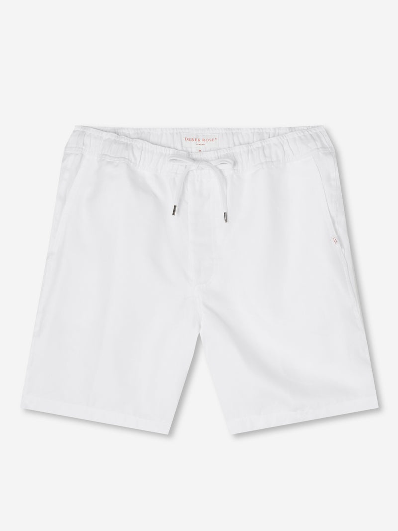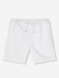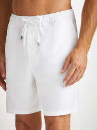 Our Sydney shorts in white are cut for a regular fit for the perfect, warm weather ready style. We have developed a mid-weight, beautifully soft and breathable pure linen that will keep you cool and comfortable in even the hottest of conditions. This made in Italy fabric is finished by being piece-dyed before construction for a bright and vibrant pure white. The Sydney short features a curved back yoke for a great fit and an elasticated waistband with drawcord for comfort. The front of the short features two angled side pockets whilst the back features a single zipped pocket that sits under the curve of the back yoke. This pocket is closed with our unique pin-lock zip which locks into place when flat to ensure a secure closure. A zipped fly opening and our minimalist rose logo label on the front left pocket finish the look. Wear the Sydney from the villa to the beach or as a cool, smart-casual short for sultry evening walks and dinner by the sea. The model is 6’1” / 188cm tall. He wears a size Medium. PRODUCT DETAILS Material: Pure Linen Fabric Weight: Medium Fabric Type: Regular Gender: Men's Colour: White Pattern: Plain Season: CLA Country of Origin: Czech Republic Composition: 100% Linen Fit: Regular Fit Item Number: 9810-SYDN001WHI