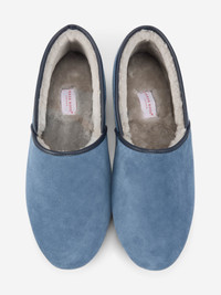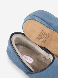 Handmade English slippers in the finest suede and sheepskin. End your day in pure comfort with the men's Crawford slippers—classic closed-back sheepskin slippers that pair perfectly with your favorite pyjamas or loungewear. Designed for warmth and ease, they’re as stylish as they are cozy. Handmade in England, each pair is crafted from premium cow suede with a soft sheepskin lining and cushioned footbed. The supple suede sole allows you to move quietly and comfortably, while a refined navy leather trim adds a touch of luxury. With over 80 years of shoemaking expertise behind them, the Crawford slippers showcase the best of English craftsmanship. Using only the finest locally sourced suede and sheepskin, each pair takes up to four weeks to create—resulting in slippers you’ll treasure season after season. PRODUCT DETAILS Composition: Wool Out (Sheep) Sheepskin In Fabric Weight: N/A Pattern: Plain Country of Origin: United Kingdom Item Number: 0500-CRAW004BLU