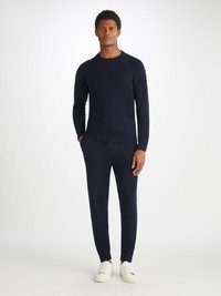 This 100% cashmere navy sweater has been designed with ribbed cuffs, hem and collar, as well as raglan sleeves for the perfect fit. Contrast internal ribbing and an integrated 'V' detail have been added for a refined finish. The starting point for the Finley was the cashmere - we selected a luxuriantly soft 12 gauge pure Italian cashmere from Cariaggi which we consider to be best in class. Touch this fabric and you'll be reminded what cashmere should feel like. The material hangs wonderfully, for a look that's as luxurious as the feel. Our philosophy is to use the finest materials and components, paying attention to every detail of construction so that the resulting garment is both comfortable and stylish. Keep your cashmere looking its best with our Beechwood Cashmere Comb. The model is wearing a size medium. Model measurements: 6ft 2in / 189cm height, 37.8in / 96cm chest, 31.9in / 81cm waist. PRODUCT DETAILS Material: Pure Cashmere Fabric Weight: Medium Fabric Type: Jersey Gender: Men's Colour: Navy Pattern: Plain Sleeve Length: Long Sleeve Season: 24-W Neck Shape: Crew Neck Country of Origin: Mauritius Composition: 100% Cashmere Fit: Regular Fit Item Number: 3159-FINL010NAV