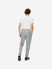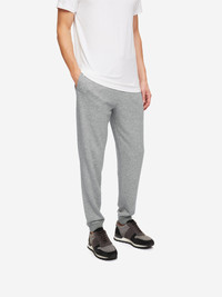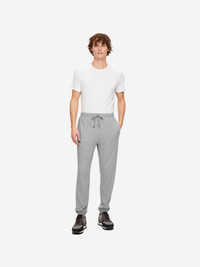 Seen here in classic silver, our Quinn sweatpants ensure all-day-long comfort whether you're sweating it out in the gym or chilling on the sofa. Featuring a combined elastic and tie waistband, our sweats also feature two front side pockets and a zipped back pocket to keep your phone and essentials close whilst you're out and about. Stylish, yet practical. The Quinn fabric combines all the key qualities of our cotton and micro modal; it's durable and has great colour retention, meaning it can withstand long-lasting wear and won't fade in colour. It's thermoregulating, making it perfect for warm days or cosy evenings in and it's breathable, so it's excellent for exercise. But perhaps most importantly, it's forever soft, seriously - you won't believe the quality. T he model is 6' 1 " / 18 6 cm tall with waist size 3 2 ” / 8 1 cm, chest size 40 ” / 100 cm. He wears a size Medium . PRODUCT DETAILS Material: Cotton/Micro Modal Fabric Weight: Medium Fabric Type: Jersey Gender: Men's Colour: Silver Pattern: Plain Season: 24-W Country of Origin: Portugal Composition: 68% Cotton 32% Modal Fit: Regular Fit Item Number: 3173-QUIN001SIL