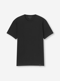 Designed in a fabric exclusive to Derek Rose, Barny is our brand new everyday wear t-shirt. Knitted in the EU, our mid weight Pima cotton t-shirt is not only breathable, but hypoallergenic. An excellent choice for any occasion. Created in a casual relaxed fit, the crew neckline features a bound collar with detailed ribbing. We have chosen to print our label inside of the neckline for optimal comfort. With twin needle cuffs and hem, our Barny t-shirt, seen here in black, is made for every adventure due to its durable finish. Pair with your trousers or shorts of choice for a capsule wardrobe essential. To make it truly special, we can personalise your garment with initials or a motif. Read more about our personalised service here . The model is 6’2” / 191cm tall with waist size 31” / 79cm, chest size 37 ” / 96cm. He wears a size Medium. PRODUCT DETAILS Material: Pure Cotton Fabric Weight: Medium Fabric Type: Jersey Gender: Men's Colour: Black Pattern: Plain Sleeve Length: Short Sleeve Season: 24-W Neck Shape: Crew Neck Country of Origin: Portugal Composition: 100% Cotton Fit: Regular Fit Item Number: 3175-BARN002BLA