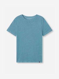 Our Jordan t-shirt needs to be touched to be believed. Jordan is an exceptionally soft pure linen jersey; this is like no other linen shirt you own. A fabric that typically comes with that rough feeling, our Jordan is cut from a super-soft and lightweight pure linen, knitted with a very fine yarn and finished with a soft wash. All this creates supernatural softness. Designed to sit in our resort collection, the Jordan is a holiday and hot climate essential. Linen is a natural fibre that comes from the flax plant and boasts characteristics perfect for warmer climates. Linen can absorb up to 20% of its weight in moisture causing it to draw perspiration away from the body. Linen is also fast-drying; the fibres release moisture back into the air very quickly and dry almost instantly because the fibre itself cannot hold air or heat. The Jordan is very breathable as the fibres allow heat to pass through easily; perfect for those welcome gusts of sea breeze on a warm day. Finally, linen is famous for its durability. Washing linen makes it stronger and softer and the tensile strength increases when wet. What can't linen do? The details have been kept minimal for a clean finish and exceptional comfort. Seen here in steel blue, the bound neckline helps minimise stretching and the t-shirt has a slightly relaxed cut for a modern fit. The model is 6’1” / 188cm tall. He wears a size Medium. PRODUCT DETAILS Material: Pure Linen Fabric Weight: Light Fabric Type: Regular Gender: Men's Colour: Steel Blue Pattern: Plain Sleeve Length: Short Sleeve Season: 25-W Neck Shape: Crew Neck Country of Origin: Portugal Composition: 100% Linen Fit: Relaxed Fit Item Number: 3163-JORD004BLU