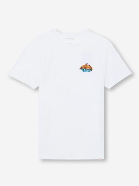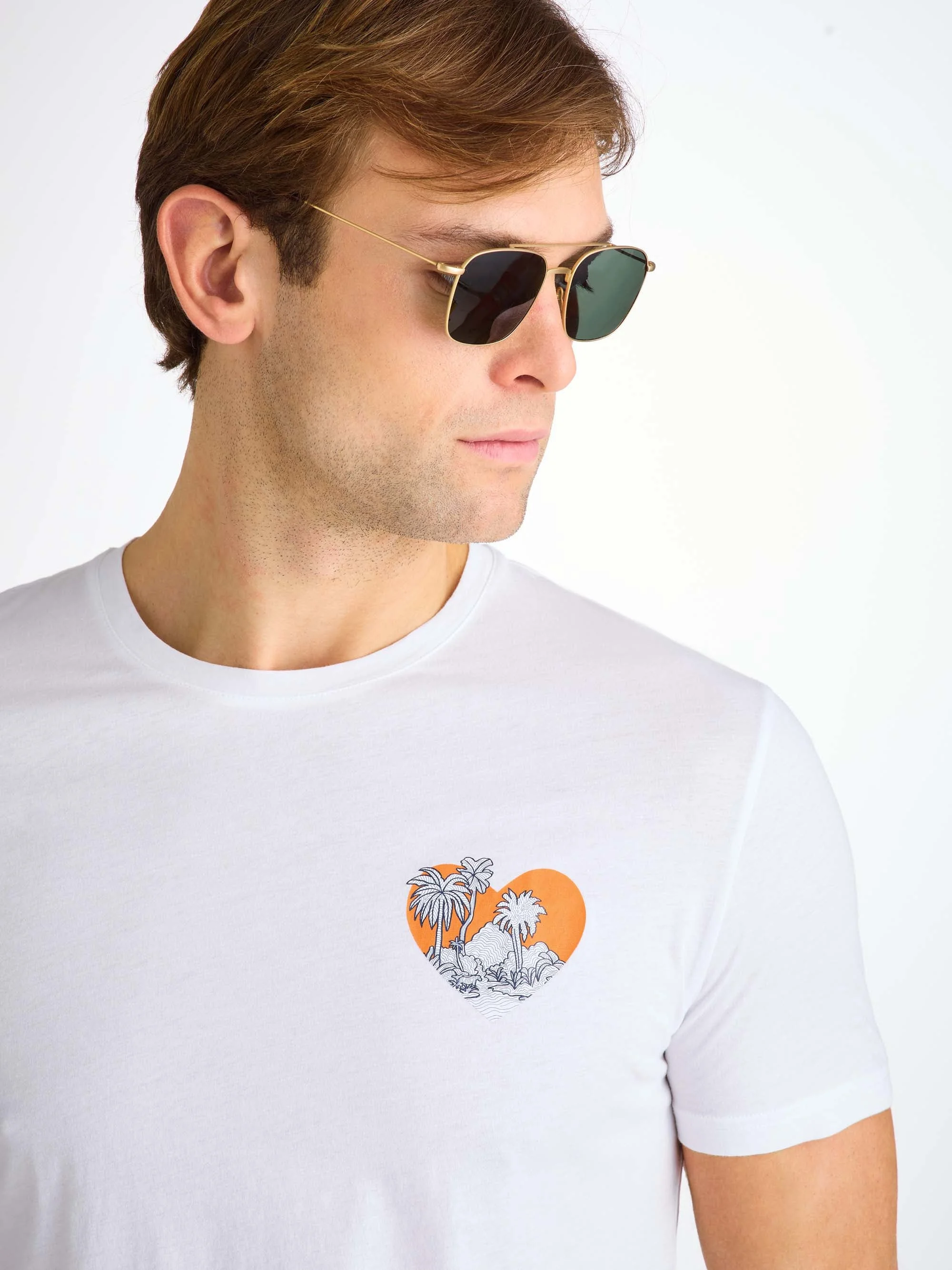 Made from 100% fine gauge Pima cotton for super-soft wear, the white Ripley t-shirt features an element of our island hopping print. The incredibly soft Pima cotton used is superior to standard cotton thanks to the extra-long staple fibres which produce a more refined and silkier touch. These unique properties also ensure the fabric won't twist or pill. The short-sleeve crew-neck design has a soft neckband with narrow cover stitching for a refined and comfortable finish and as always, our branding is kept subtle — with a minimalist label tacked at the hem and a printed logo to avoid irritating neck labels. Incredibly versatile, the Ripley will look great on holiday paired with our swim shorts during the day or smarter linen shorts for a casual evening look. Luckily this tee is so soft, that you'll probably want to also wear it on weekends when lounging at home or when heading out for the day. The model is 6’2’’ / 188.5cm tall. He wears a size Medium. PRODUCT DETAILS Material: Pure Cotton Fabric Weight: Light Fabric Type: Jersey Gender: Men's Colour: White Pattern: Print Sleeve Length: Short Sleeve Season: 25-W Neck Shape: Crew Neck Country of Origin: Portugal Composition: 100% Cotton Fit: Regular Fit Item Number: 3054-RIPL026WHI