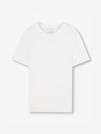 Our white Riley crew-neck t-shirt is cut from 100% fine gauge pima cotton for a luxurious essential. This supersoft fabric is lightweight and breathable making it perfect for enjoying the sun in comfort. Our incredibly soft pima cotton is superior to standard cotton thanks to the extra long staple fibres which produce a more refined and silkier touch. These unique properties also ensure the fabric won't twist or pill and the vibrant colour lasts, wash after wash. The short-sleeve crew-neck design has a soft neckband with narrow cover stitching for a refined and comfortable finish and as always, our branding is kept subtle — with a minimalist label tacked at the hem and a printed logo to avoid irritating neck labels. True to our philosophy of 'Smart Comfort', we have focused on uniting beautiful, inspirational designs with our market leading technical approach for our resortwear range. Wear to the beach, after a dip in the pool, whilst lounging or as a cool, evening alternative, the Riley tee is incredibly versatile. The model is 6' 1 " / 18 5 cm tall with waist size 3 1 ” / 79 cm, chest size 38 ” / 9 6 cm. He wears a size Medium . PRODUCT DETAILS Material: Pure Cotton Fabric Weight: Light Fabric Type: Jersey Gender: Men's Colour: White Pattern: Plain Sleeve Length: Short Sleeve Season: CLA Neck Shape: Crew Neck Country of Origin: Czech Republic Composition: 100% Cotton Fit: Regular Fit Item Number: 3052-RILE001WHI