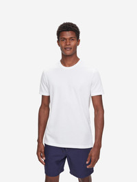 Featuring a soft crew-neck band finish and a shape that is both comfortable and flattering, we've elevated this leisure t-shirt into a luxury essential for the modern man. As always, our branding is kept subtle — with a minimalist label tacked at the hem and a printed logo to avoid irritating neck labels. Ramsay is made from a premium blend of pure cotton, lyocell and elastane. The cotton gives the pique its structure, the lyocell provides a super soft feel against the skin and the elastane ensures the tee will keep its shape wash after wash. Lyocell is environmentally friendly as it uses a low amount of energy and water in production and is made from fast-growing Eucalyptus trees from sustainably managed forests. The model is 6'2" / 189cm tall with waist size 31.9” / 81cm, chest size 37.8” / 96cm. He wears a size Medium. PRODUCT DETAILS Material: Cotton Lyocell Stretch Fabric Weight: Medium Fabric Type: Jersey Gender: Men's Colour: White Pattern: Plain Sleeve Length: Short Sleeve Season: 24-S Neck Shape: Crew Neck Country of Origin: Portugal Composition: 51% Cotton 47% Lyocell 2% Elastane Fit: Regular Fit Item Number: 3070-RAMS001WHI