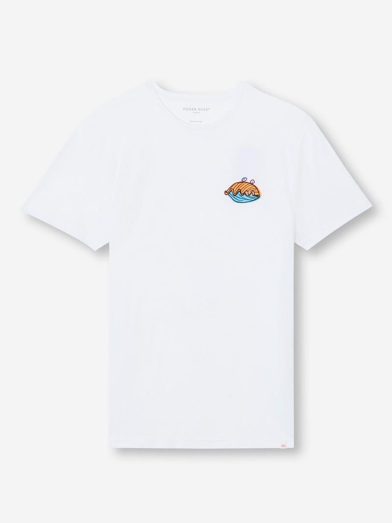 Made from 100% fine gauge Pima cotton for super-soft wear, the white Ripley 22 t-shirt features our whimsical friends of the sea confused clam. The incredibly soft Pima cotton used is superior to standard cotton thanks to the extra-long staple fibres which produce a more refined and silkier touch. These unique properties also ensure the fabric won't twist or pill. The short-sleeve crew-neck design has a soft neckband with narrow cover stitching for a refined and comfortable finish and as always, our branding is kept subtle — with a minimalist label tacked at the hem and a printed logo to avoid irritating neck labels. Incredibly versatile, the Ripley will look great on holiday paired with our swim shorts during the day or smarter linen shorts for a casual evening look. Luckily this tee is so soft, that you'll probably want to also wear it on weekends when lounging at home or when heading out for the day. The model is 6’1” / 188cm. He wears a size Medium. PRODUCT DETAILS Material: Pure Cotton Fabric Weight: Light Fabric Type: Jersey Gender: Men's Colour: White Pattern: Print Sleeve Length: Short Sleeve Season: 25-S Neck Shape: Crew Neck Country of Origin: Portugal Composition: 100% Cotton Fit: Regular Fit Item Number: 3054-RIPL022WHI