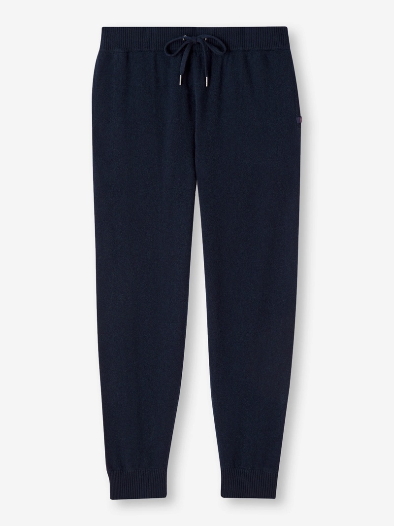 The Finley track pant is perfect in and out of the house, whether you're hitting the slopes, on a country walk or chilling on the sofa. With its elasticated waist, drawstring tie and slip-in side pockets, the aim was to create a garment that looks effortlessly chic but is still as comfortable to slip into as a favourite tracksuit. Our Finley navy men's cashmere track pants have a gradual taper to the leg and a ribbed waistband and ankle cuffs, for a relaxed yet stylish fit. Our philosophy is to use the finest materials and components, paying attention to every detail of construction so that the resulting garment is both comfortable and stylish. The starting point for the Finley was the cashmere - we selected a luxuriantly soft 12 gauge pure Italian cashmere from Cariaggi which we consider to be best in class. Certified by the Health and Textile Association, we use 100% Cariaggi cashmere. Prioritising sustainable practices and producing natural fibres that are environmentally responsible, Cariaggi cashmere is hypoallergenic and gentle on the skin. Touch this fabric and you'll be reminded what cashmere should feel like. The material hangs wonderfully, for a look that's as luxurious as the feel. Keep your cashmere looking its best with our Beechwood Cashmere Comb. The model is 6'1" / 186cm tall. He wears a size Medium. PRODUCT DETAILS Material: Pure Cashmere Fabric Weight: Medium Fabric Type: Jersey Gender: Men's Colour: Navy Pattern: Plain Season: 25-W Country of Origin: Mauritius Composition: 100% Cashmere Fit: Regular Fit Item Number: 3615-FINL010NAV