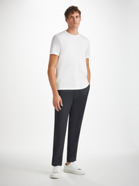 Designed with everyday wear in mind and offering special features for travelling, our Harris trousers are as luxurious as functional. Featuring a comfortable, regular fit with a straight leg finish, an elasticated waistband with a concealed drawstring makes for excellent travelling. Made in navy, Harris has a single pocket at the back as well as angled pockets at the sides, all with concealed zips. Ideal for tucking your passport into for safe keeping. Super soft and breathable, our Harris twill features a sustainable Lyocell and a durable finish which is not only crease resistant, but temperature regulating too. Ideal for your next evening abroad. The model is 6’1” / 188cm tall with waist size 32” / 82cm, chest size 38” / 99cm. He wears a size Mediu m. PRODUCT DETAILS Material: Lyocell Cotton Fabric Weight: Medium Fabric Type: Regular Gender: Men's Colour: Navy Pattern: Plain Season: 24-W Country of Origin: Portugal Composition: 62% Lyocell 35% Cotton 3% Elastane Fit: Regular Fit Item Number: 9860-HARR001NAV