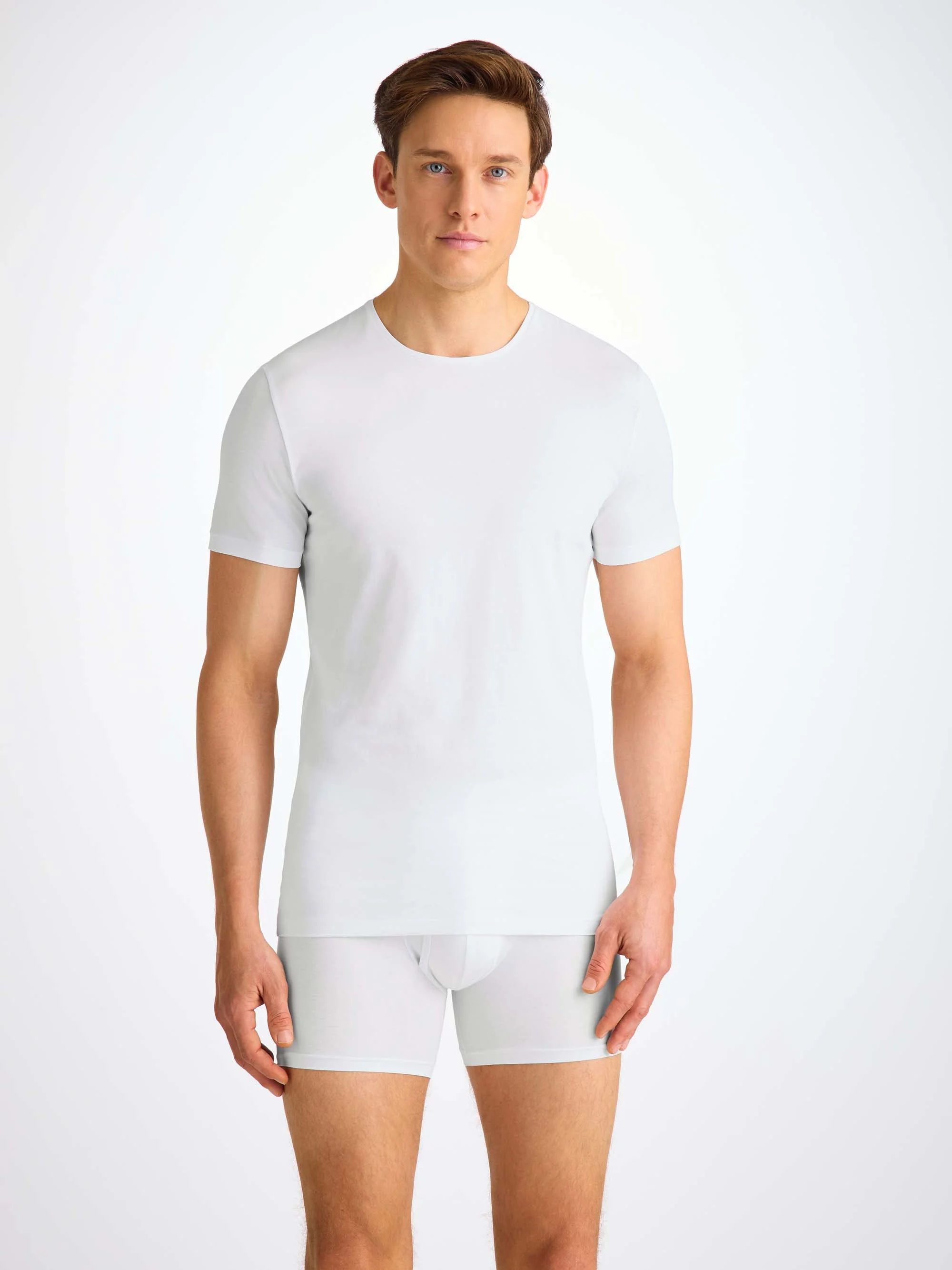 Designed for a minimalist, streamlined look, it features a close fit and a longer length to tuck into trousers. It's crafted from a super-soft blend of 92% Pima cotton and 8% elastane for added stretch. Combined with ultra-fine seams it's the perfect layering choice for all-day luxurious comfort. The model is 6'2" / 189cm tall with waist size 31.9” / 81cm, chest size 37.8” / 96cm. He wears a size Medium. PRODUCT DETAILS Material: Cotton/Elastane Fabric Weight: Light Fabric Type: Jersey Gender: Men's Colour: White Pattern: Plain Sleeve Length: Short Sleeve Season: CLA Neck Shape: Crew Neck Country of Origin: Albania Composition: 92% Cotton 8% Elastane Fit: Slim Fit Item Number: 8005-JACK001WHI