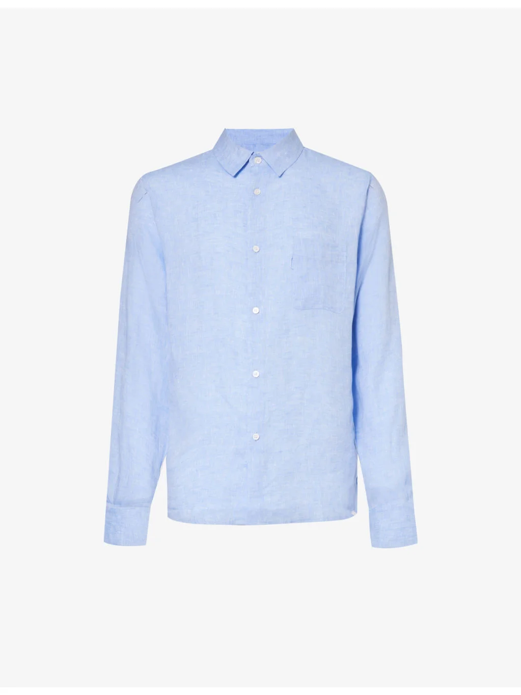 PRODUCT DETAILS - Derek Rose linen shirt - 100% linen - Exposed button fastenings at front - Regular fit, spread collar, long sleeves, buttoned cuffs, patch pocket at chest, woven texture - Machine wash cold - Model is 6ft 2in/1.88m and wears a size medium - Lightweight, non-stretch Ref: R04232215