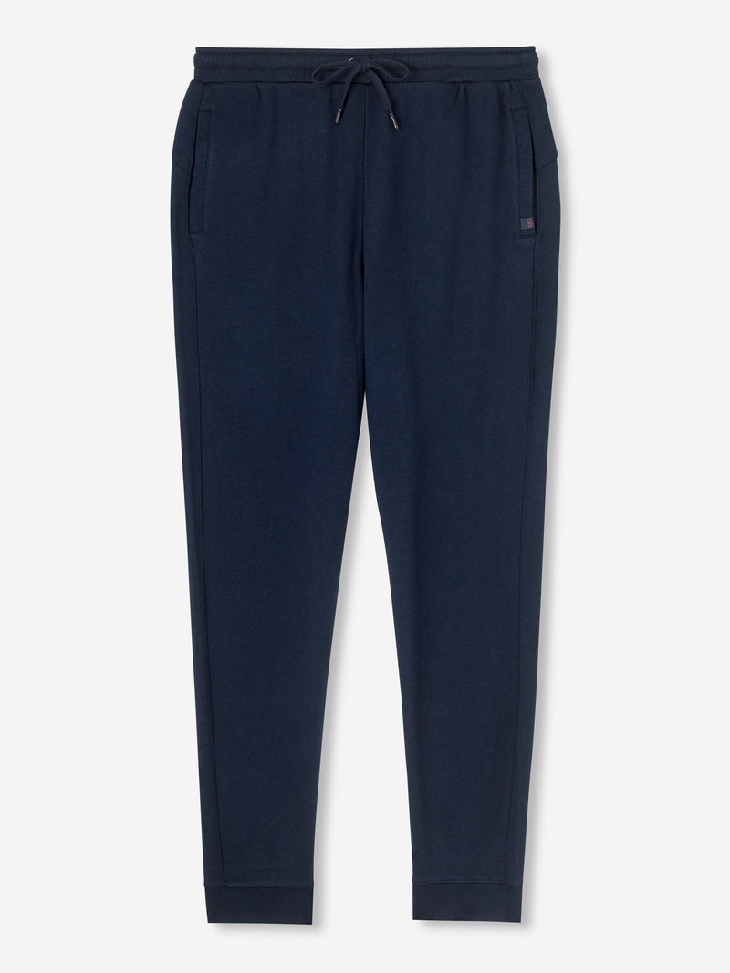 Seen here in a classic navy, our Quinn sweatpants ensure all-day-long comfort whether you're sweating it out in the gym or chilling on the sofa. Featuring a combined elastic and tie waistband, our sweats also feature two front side pockets and a zipped back pocket to keep your phone and essentials close whilst you're out and about. Stylish, yet practical. The Quinn fabric combines all the key qualities of our cotton and micro modal; it's durable and has great colour retention, meaning it can withstand long-lasting wear and won't fade in colour. It's thermoregulating, making it perfect for warm days or cosy evenings in and it's breathable, so it's excellent for exercise. But perhaps most importantly, it's forever soft, seriously - you won't believe the quality. The model is 6’2” / 191cm tall with waist size 31” / 79cm, chest size 37 ” / 96cm. He wears a size Medium. PRODUCT DETAILS Material: Cotton/Micro Modal Fabric Weight: Medium Fabric Type: Jersey Gender: Men's Colour: Navy Pattern: Plain Season: 24-W Country of Origin: Portugal Composition: 68% Cotton 32% Modal Fit: Regular Fit Item Number: 3173-QUIN001NAV