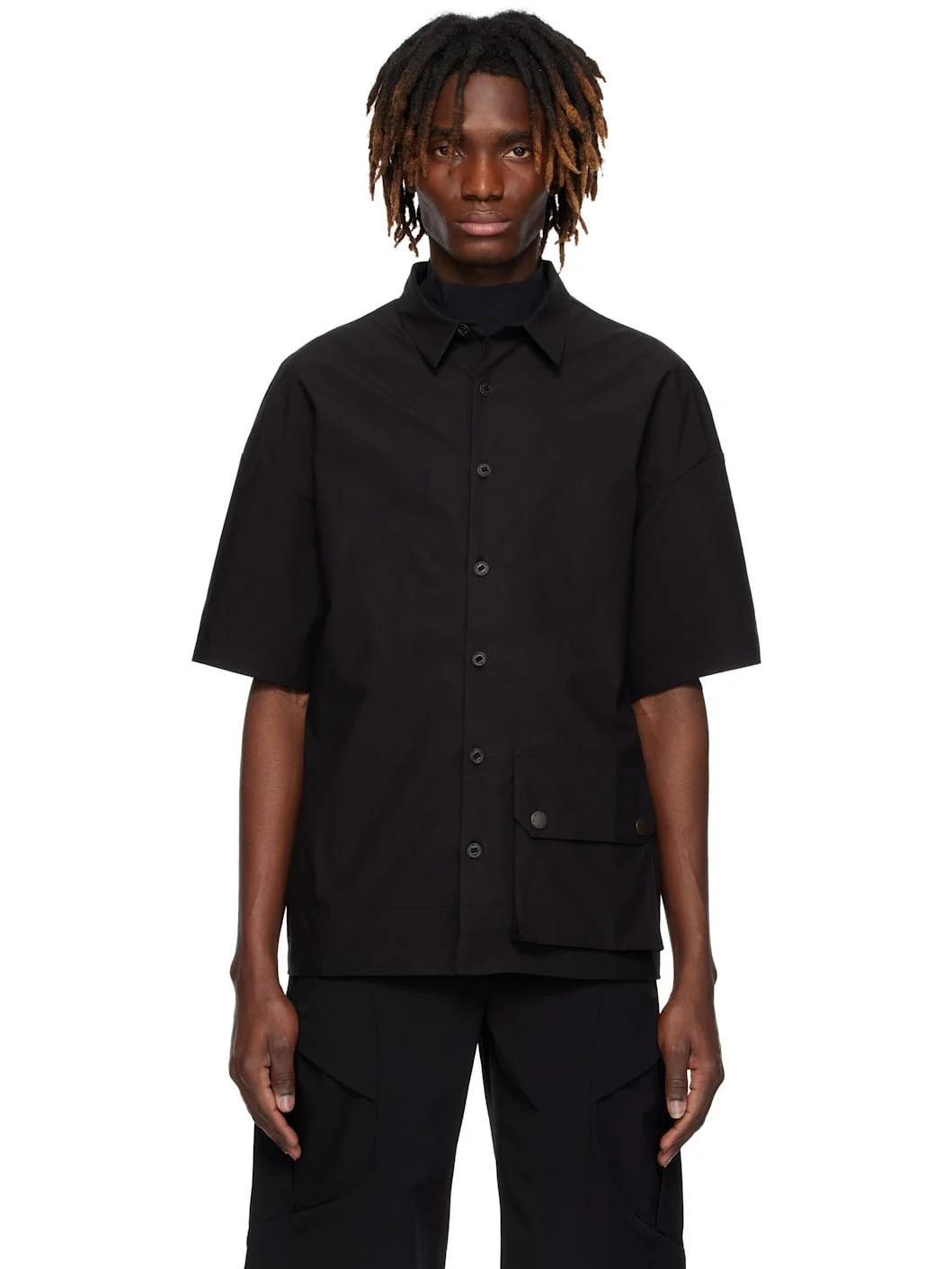 Cotton poplin shirt. · Spread collar · Button closure · Flap pocket at front hem Supplier color: Black 100% cotton. Made in Japan 251212M192000