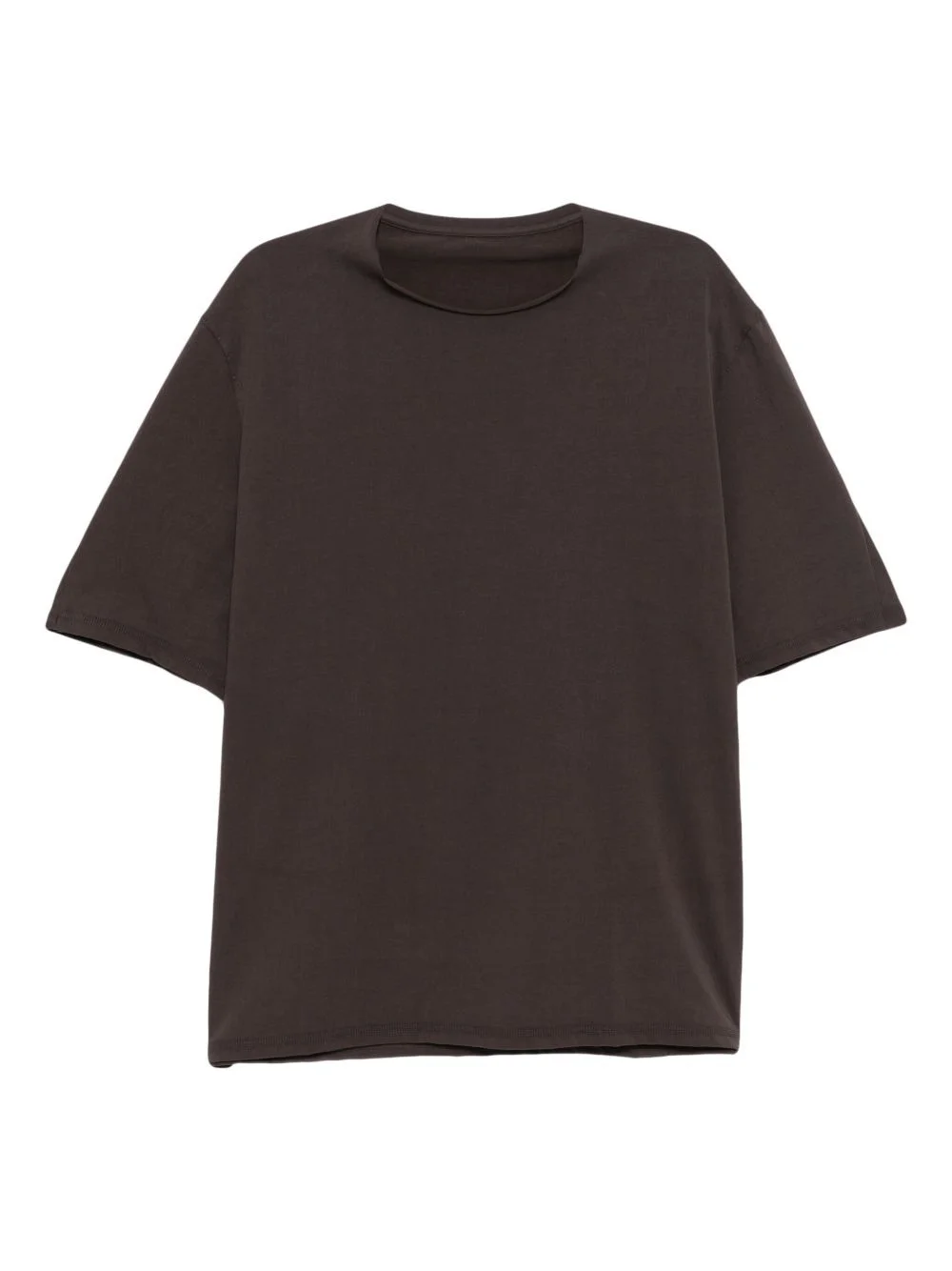 cotton T-shirt Highlights - Smoke grey - Crew neck - Short sleeves - Drop shoulder - Straight hem Imported Composition Cotton 100% SIZE & FIT Model measurements Height 6 ft 2 in(1.88 m) Bust/Chest 33.46 in(85 cm) Hips 36.22 in(92 cm) Waist 27.55 in(70 cm) FittingInformation Designed for a relaxed fit, this piece allows for comfort and movement when worn Made from a midweight non-stretch fabric, this piece offers minimal elasticity when worn Washing instructions Hand Wash