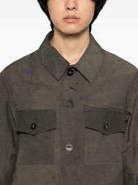 Hunting jacket Highlights - Cedar brown - Front button fastening - Four front flap pockets - Long sleeves Imported Composition Viscose 55%, Eco Linen 45% SIZE & FIT Model measurements Height 6 ft 2 in(1.88 m) Bust/Chest 33.46 in(85 cm) Hips 36.22 in(92 cm) Waist 27.55 in(70 cm) FittingInformation Designed for a regular fit, allowing for a comfortably loose fit throughout the body Made from a midweight fabric Washing instructions Hand Wash