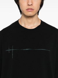 printed T-shirt Highlights - Black - Crew neck - Short sleeves - Straight hem - Raw-cut finish Imported Composition Cotton 100% SIZE & FIT Model measurements Height 6 ft 2 in(1.88 m) Bust/Chest 34.25 in(87 cm) Hips 34.64 in(88 cm) Waist 26.77 in(68 cm) FittingInformation Designed for a relaxed fit, this piece allows for comfort and movement when worn Made from a midweight non-stretch fabric, this piece offers minimal elasticity when worn