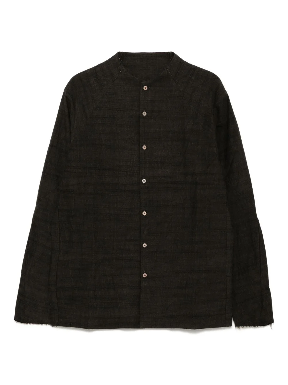 textured cotton shirt Highlights - Dark brown - Front button fastening - Collarless - Buttoned-cuff sleeves Imported Composition Cotton 100% Washing instructions Dry Clean Only