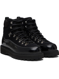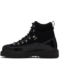 Ankle-high melton boots. · Lace-up closure · Padded tongue and collar · Logo embossed at outer side · Pull-loop at heel collar · Polished leather trim at welt · Foam rubber midsole · Treaded rubber sole Supplier color: Black fullgrain Upper: textile. Sole: rubber. Made in Italy 261396M255003