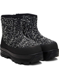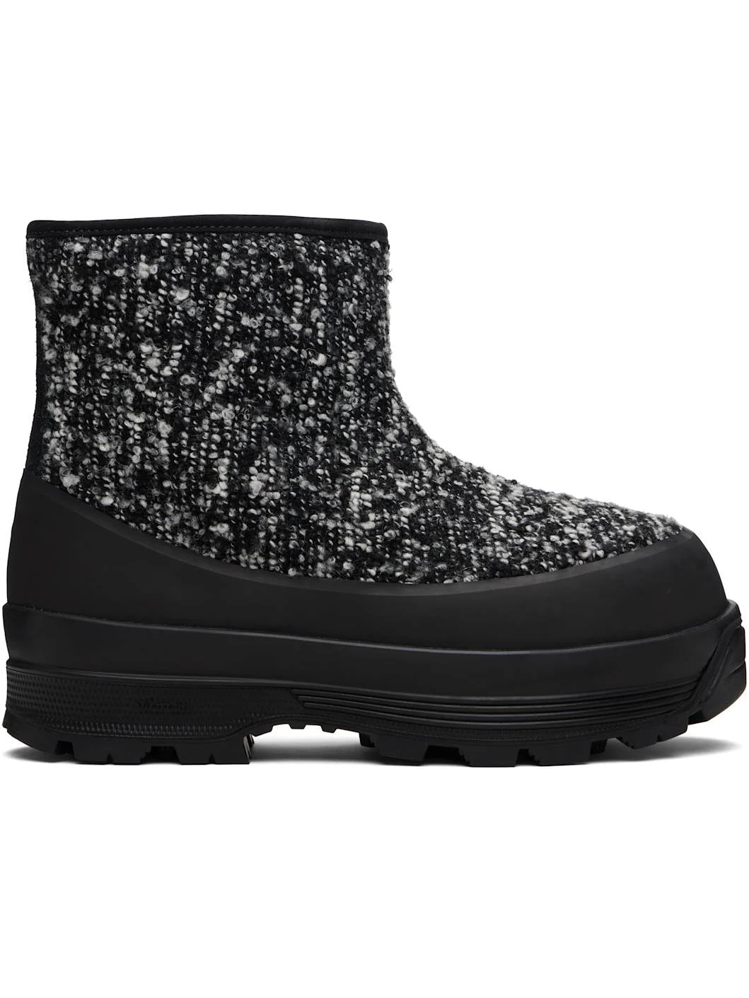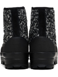 Ankle-high tweed boots. · Suede trim throughout · Shearling lining · Rubber trim at welt · Treaded Vibram® Sniper Alta rubber sole Supplier color: Black/White tweed Upper: textile, leather. Sole: rubber. Made in Italy 261396M223001