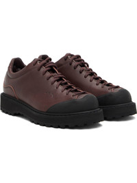 Grained leather derbys. · Rubber trim at toe · Lace-up closure · Padded tongue and collar · Logo embossed at outer side · Foam rubber midsole · Treaded rubber sole · Includes additional laces Supplier color: Brown leather Upper: leather. Sole: rubber. Made in Italy 252396M225008