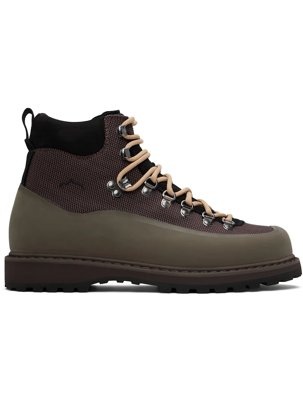 Ankle-high canvas boots. · Lace-up closure · Padded tongue and collar · Logo embroidered at outer side · Mesh lining · Rubber trim at welt · Foam rubber midsole · Treaded rubber sole Supplier color: Brown fabric Upper: textile. Sole: rubber. Made in Italy 252396M255017