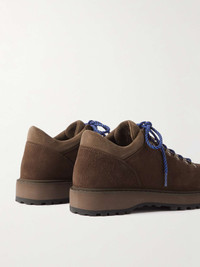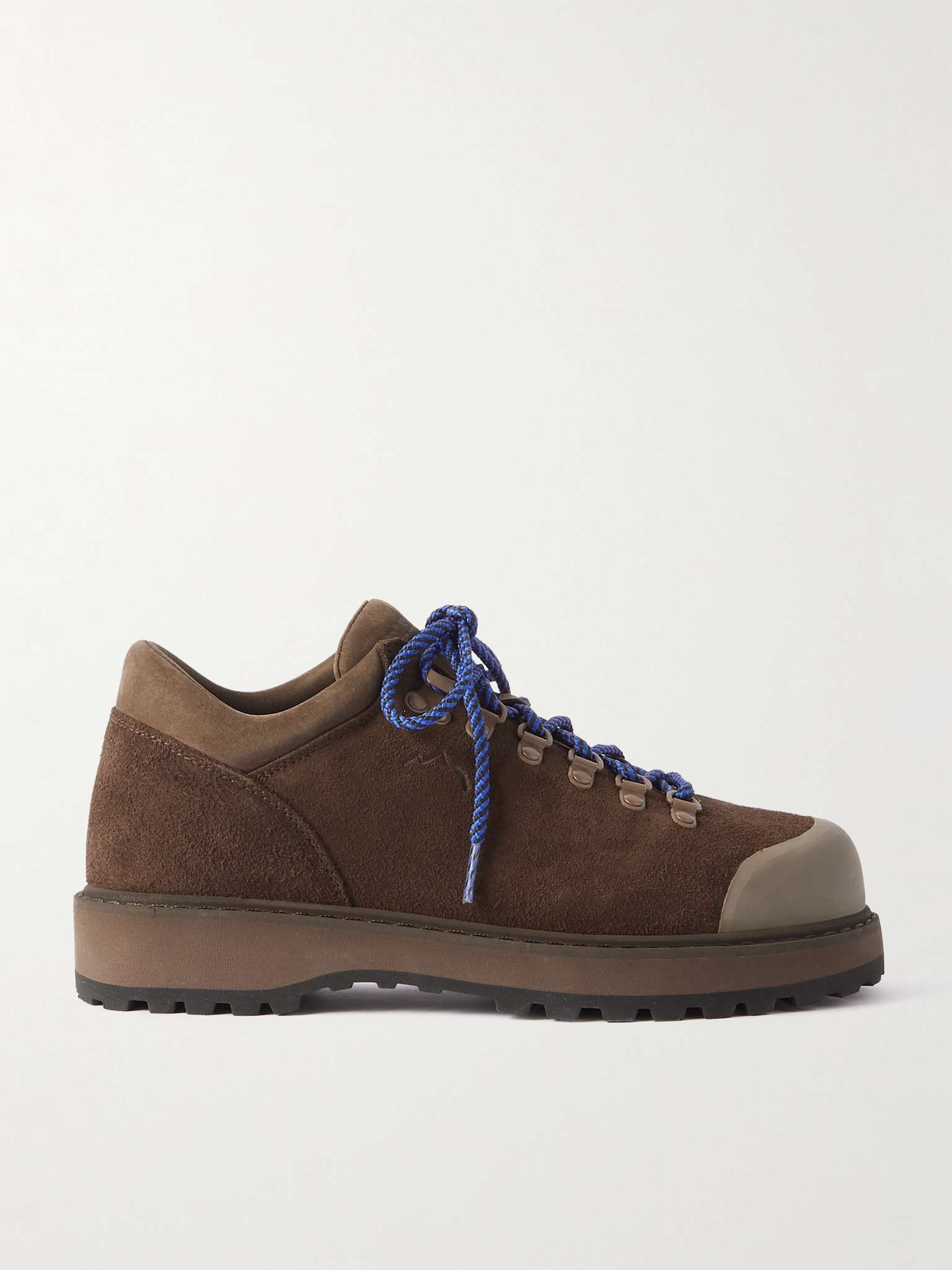 Named after Diemme's favourite pizzeria in Italy, these 'Cornaro' sneakers are modelled after classic hiking boots. They're made from wax-treated suede that protects them from moisture and have rubber toe caps and metal D-rings. Size & Fit - Fits true to size. Take your normal size - Only available in full sizes, go up to the nearest whole size if you take a half size - European sizing Details & Care - Tonal-brown suede (Calf), taupe rubber - Lace-up