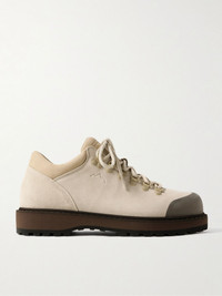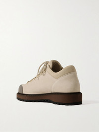 Named after Diemme's favourite pizzeria in Italy, these 'Cornaro' sneakers are modelled on classic hiking boots. They're made from wax-treated suede that protects them from moisture and have rubber toe caps and metal D-rings. Size & Fit - Fits true to size. Take your normal size - Only available in full sizes, go up to the nearest whole size if you take a half size - European sizing Details & Care - Tonal-beige suede (Cow), mushroom rubber - Lace-up - Designer colour: Cool Sand - Style number: DI25SPCOM-F02X055