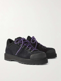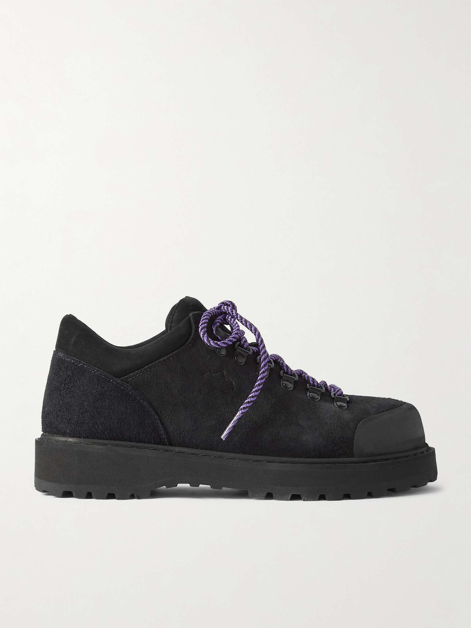 Named after Diemme's favourite pizzeria in Italy, these 'Cornaro' sneakers are modelled after classic hiking boots. They're made from wax-treated suede that protects them from moisture and have rubber toe caps and metal D-rings. Size & Fit - Fits true to size. Take your normal size - Only available in full sizes, go up to the nearest whole size if you take a half size - European sizing Details & Care - Black suede (Calf) and rubber - Lace-up