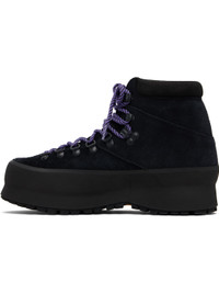 Ankle-high suede boots. · Lace-up closure · Padded tongue and collar · Logo embossed at outer side · Grained nappa leather lining · Rubber trim at welt · Treaded Vibram® rubber sole · Includes additional laces Supplier color: Black suede Upper: leather. Sole: rubber. Made in Italy 261396M255006