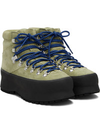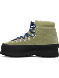 Ankle-high suede boots. · Lace-up closure · Padded tongue and collar · Logo embossed at outer side · Grained nappa leather lining · Rubber trim at welt · Treaded Vibram® rubber sole · Includes additional laces Supplier color: Green moss suede Upper: leather. Sole: rubber. Made in Italy 261396M255004