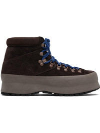 Ankle-high suede boots. · Lace-up closure · Padded tongue and collar · Logo embossed at outer side · Grained nappa leather lining · Rubber trim at welt · Treaded Vibram® rubber sole · Includes additional laces Supplier color: Bison suede Upper: leather. Sole: rubber. Made in Italy 261396M255007