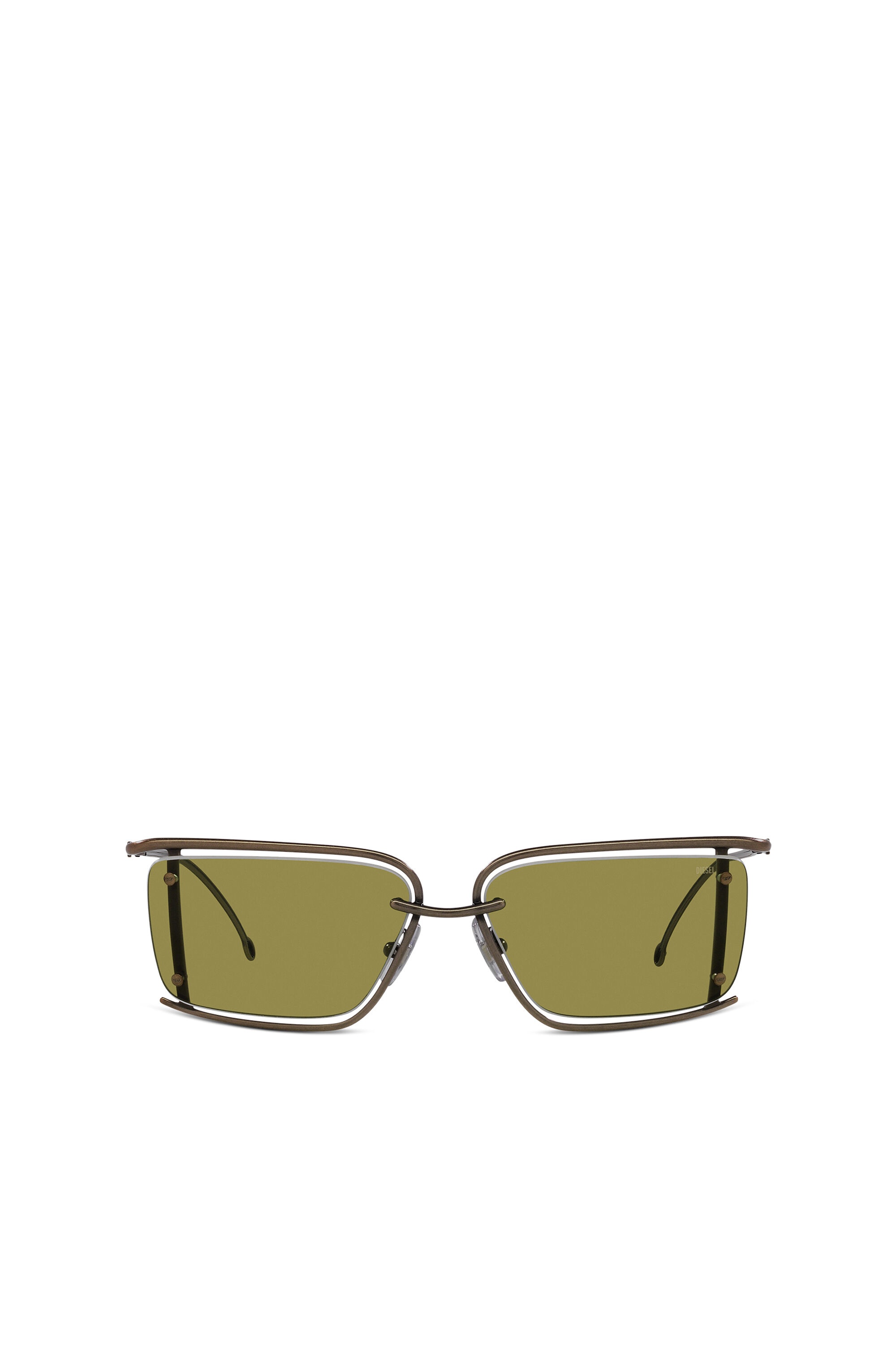 This rectangle and industrial model showcases floating lenses with a peculiar colored accent on the lenses' bevel and D logo engraved screw heads. Along with the entire collection, it features the distinctive metal double wire temples