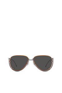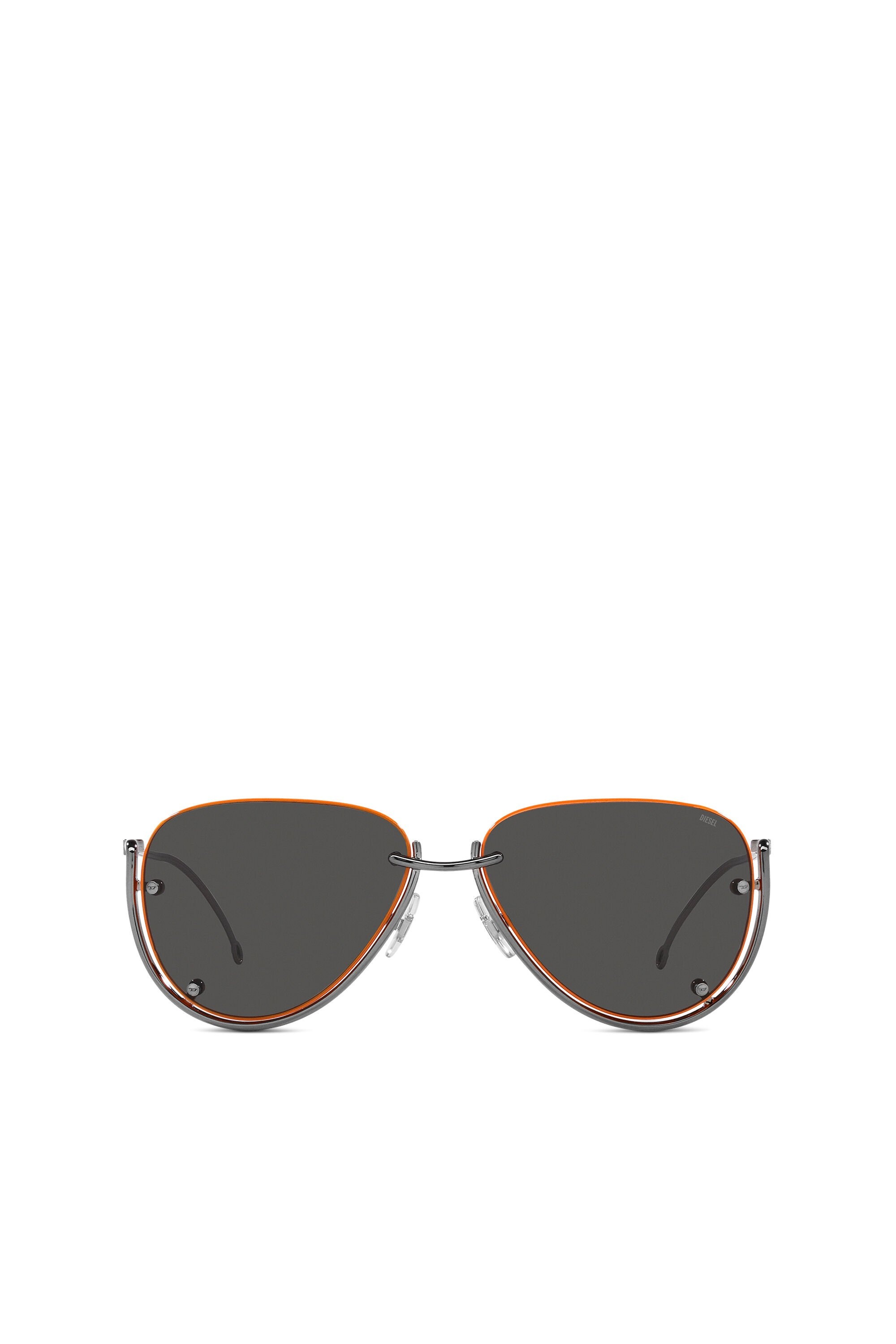 This pilot model showcases floating lenses with a peculiar colored accent on the lenses' bevel and D logo screw heads. Along with the entire collection, it features the distinctive metal double wire temples