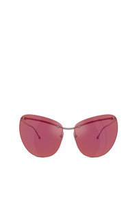 Featuring the iconic double wire metal temple, this style widens the lens proportion for a very deep and wraparound look. The rimless lenses are held by a rounded metal bar and customized D-icon screws.