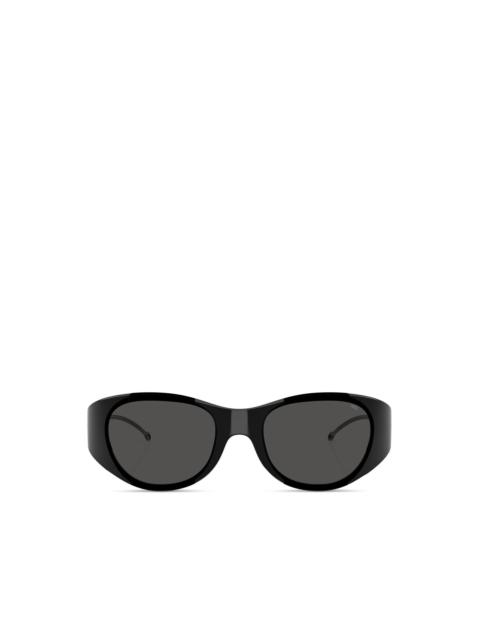 This model celebrates the original and iconic 3001 triangle temple with an ergonomic front cut where lenses flush with plastic for a sporty style. The new finishings on plastic embrace Diesel experimental aesthetic