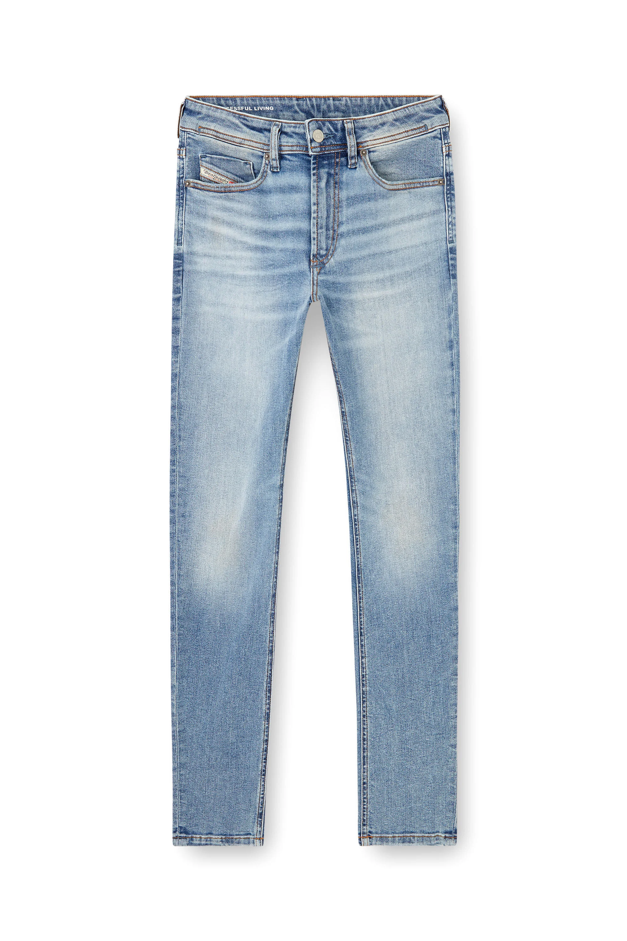 Product Description Skinny fit with a low waist and a long, narrow leg from thigh to ankle, cut for the perfect amount of bunching in the leg. This light blue stretch denim is a subtle interpretation of Diesel's DNA aesthetic. The authentic, lived-in look is enhanced by a soft dirt finish on the knees. ID: A035940DBDQ Size & Fit Model is wearing a size 32 and is 182 cm / 5'10'' Check the size chart to choose the correct size. Materials & Details Composition: 83%Cotton 15%Polyester 2%Elastane-Spandex Fit: Skinny Waist: Low Wash: Medium treated Fabric: Stretch Closure: Zip fly Crotch: Regular