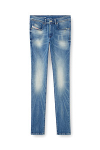 Product Description Skinny fit with a low waist and a long, narrow leg from thigh to ankle, cut for the perfect amount of bunching in the leg. This stretch denim features a medium blue wash with used effects in a lighter shade, emphasised by subtle abrasions. It's part of Diesel's DNA selection. ID: A035940DBDR Size & Fit Model is wearing a size 32 and is 182 cm / 5'10'' Check the size chart to choose the correct size. Materials & Details Composition: 85%Cotton 14%Polyester 1%Elastane-Spandex Fit: Skinny Waist: Low Wash: Medium treated Fabric: Stretch Closure: Zip fly Crotch: Regular