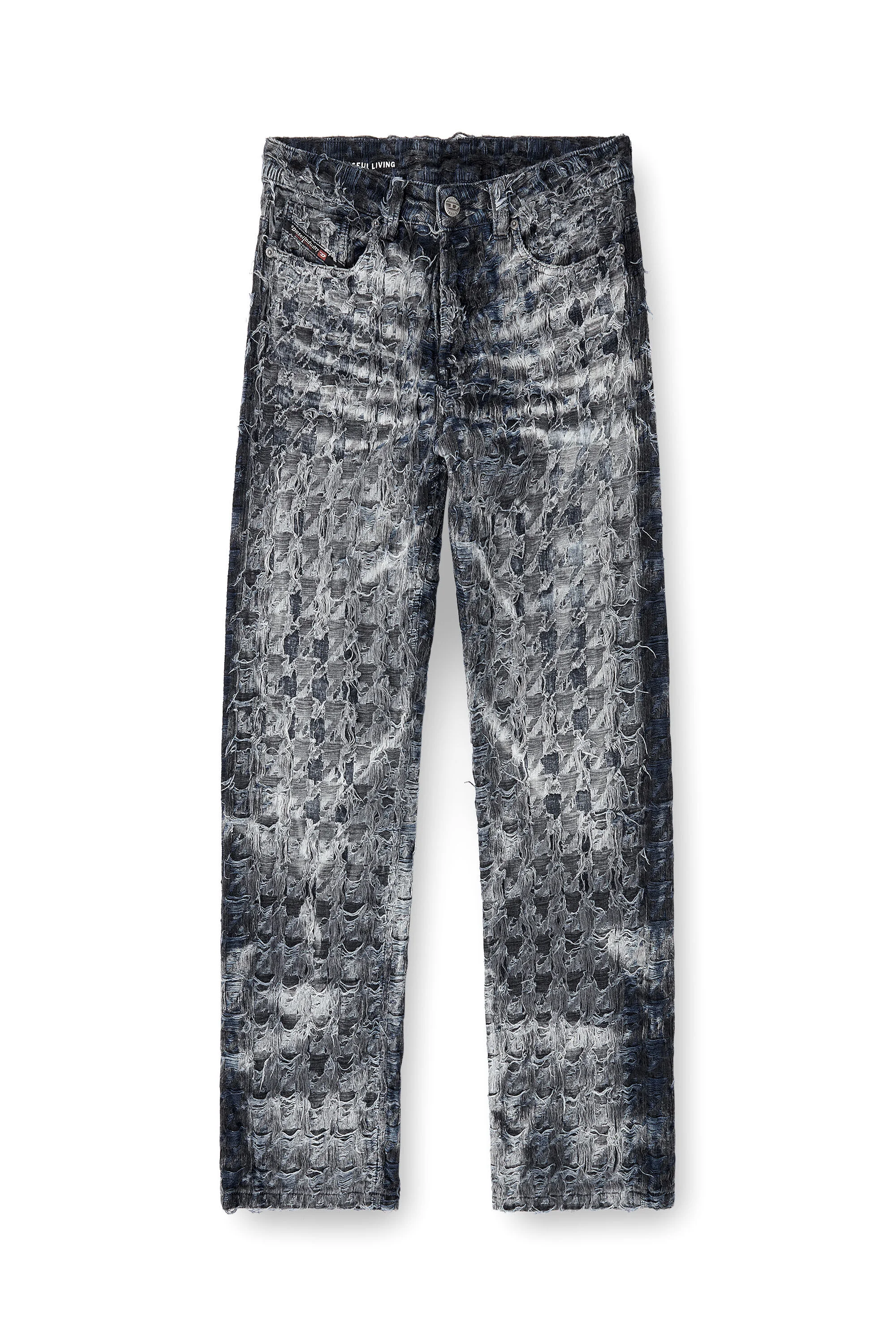 Product Description Crafted from fix denim, this Runway wash showcases bold light and dark contrasts in a contemporary houndstooth pattern. The fabric is woven using black and blue threads, then treated with bleach and tie-dye techniques to create the motif. Laser and burn effects enhance the worn-in texture and floating threads, making each piece one-of-a-kind – an expression of Diesel’s denim expertise and innovative spirit. ID: A213540CEBL Size & Fit Model is wearing a size 32 and is 182 cm / 5'10'' Check the size chart to choose the correct size. Materials & Details Composition: 100%Cotton Fit: Relaxed Waist: Mid Wash: Treated Fabric: Non-Stretch Closure: Button fly Crotch: Regular