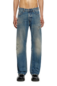 Product Description Relaxed fit with a medium waist that sits on the hips, and a straight leg. The back pockets feature double eagle stitching. Button fly. Interpreting Diesel's signature destroyed aesthetic in medium blue, this fix denim is crafted from organic cotton and enriched with ripped and repaired patches and a subtle all-over dirt effect. ID: A1579509M28 Size & Fit Model is wearing a size 32 and is 182 cm / 5'10'' Check the size chart to choose the correct size. Materials & Details Composition: 100%Cotton Fit: Relaxed Waist: Mid Wash: Destroyed Fabric: Non-Stretch Closure: Button fly Crotch: Regular