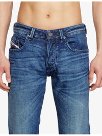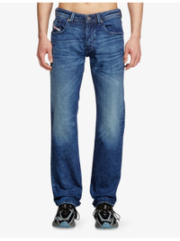 PRODUCT DETAILS - Diesel denim-blend jeans - 98% cotton, 1% elastane - Exposed button and concealed zip-fly fastening at front - Regular fit, low rise, straight leg, belt loops, classic five pockets, whiskering, brand patch at back - Machine wash at 30°C - Midweight, non-stretch Ref: R04410628