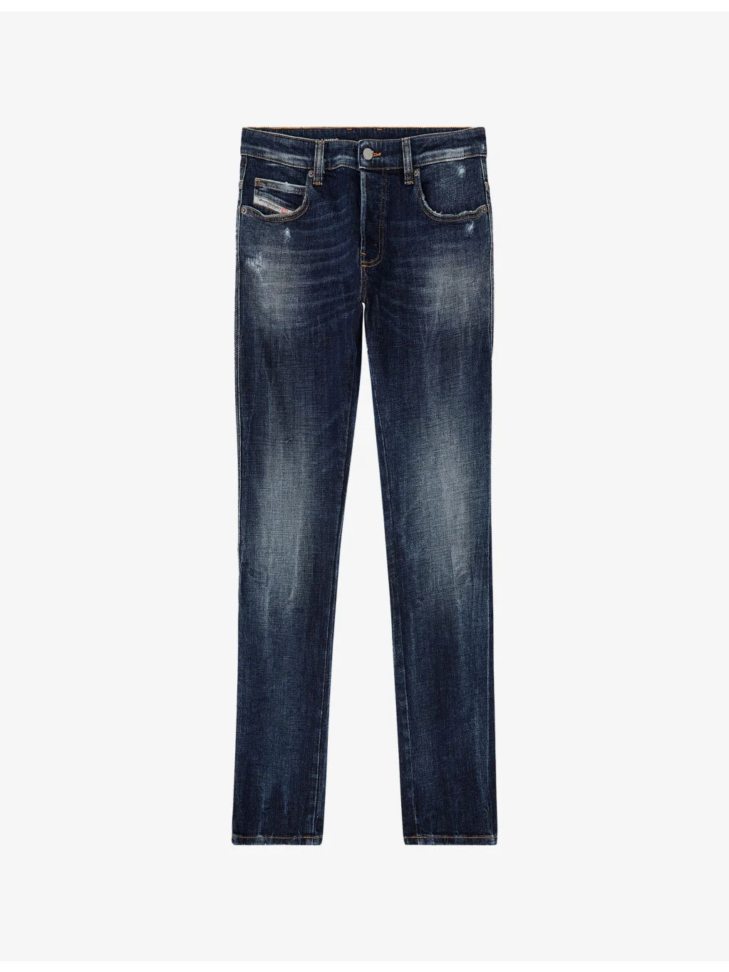 PRODUCT DETAILS - Diesel denim jeans - 99% cotton, 1% elastane - Button and button-fly fastening - Slim fit, mid waist, five pockets, brand patch, small abrasions, dark wash - Machine wash cold - Model is 5ft 10in/1.78m and wears a size 32 - Midweight, non-stretch Ref: R04559234